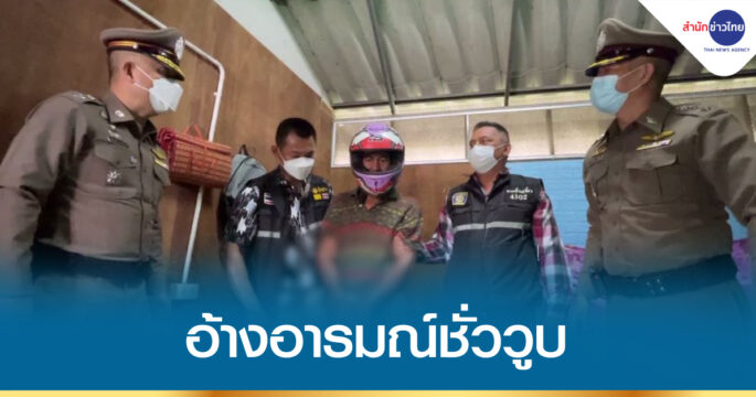 ตำรวจคุมตัวหนุ่มใหญ่คลั่งยาบ้าจนหลอน คิดว่าภรรยามีชู้ ใช้มีดปาดคอเมียจนเสียชีวิตไปทำแผนฯ เจ้าตัวสารภาพ เสพยาบ้า 3 เม็ด ก่อนก่อเหตุ