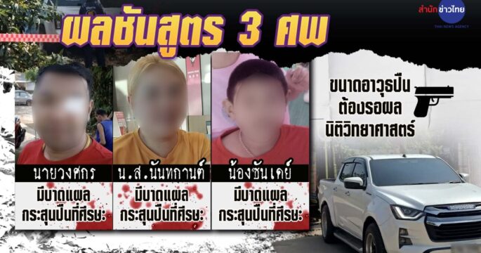 รู้เบาะแสแล้ว คนร้ายใช้ปืนบีบีกันดัดแปลงจ่อยิงศีรษะ 3 พ่อแม่ลูก แล้วยัดศพในรถกระบะอำพรางซุกข้างบ้านร้าง จ.กำแพงเพชร