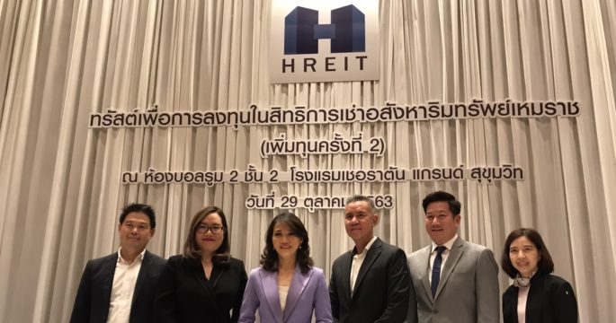 ทรัสต์เพื่อการลงทุนในสิทธิการเช่าอสังหาริมทรัพย์เหมราช หรือ HREIT จ่อเพิ่มทุนครั้งที่ 2 เพื่อลงทุนในสิทธิการเช่าอสังหาริมทรัพย์มูลค่ารวมไม่เกิน 1,337.70 ล้านบาท เตรียมเสนอขายจำนวนทั้งสิ้นไม่เกิน 137.50 ล้านหน่วย ในราคา 7.50 บาทต่อหน่วย ชูศักยภาพทำเลทองเติบโตตามยุทธศาสตร์ชาติเมกะโปรเจ็กต์ EEC