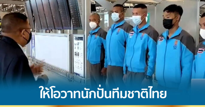 นายกสมาคมกีฬาจักรยานฯ ส่งและให้โอวาทนักกีฬาจักรยานเสือภูเขาทีมชาติไทย ก่อนเดินทางเข้าร่วมการแข่งขันจักรยานเสือภูเขา รายการคัมโบเดีย เมาเท่นไบค์ ซีรีส์ สนามที่ 3 ที่กัมพูชา