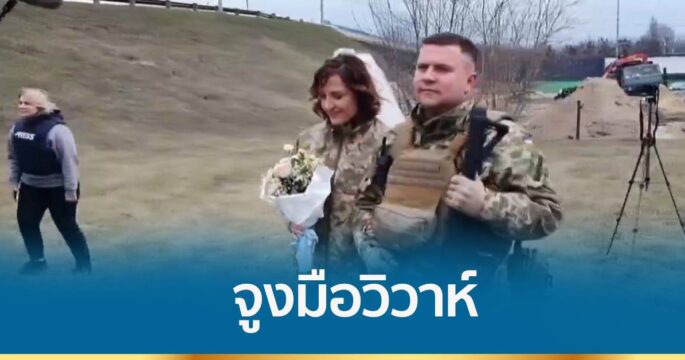 คู่รักชาวยูเครนจูงมือเข้าสู่ประตูวิวาห์ แม้ว่าจะอยู่ในช่วงสงครามระหว่างยูเครนกับรัสเซีย แต่ก็ไม่เป็นอุปสรรคสำหรับทั้งคู่