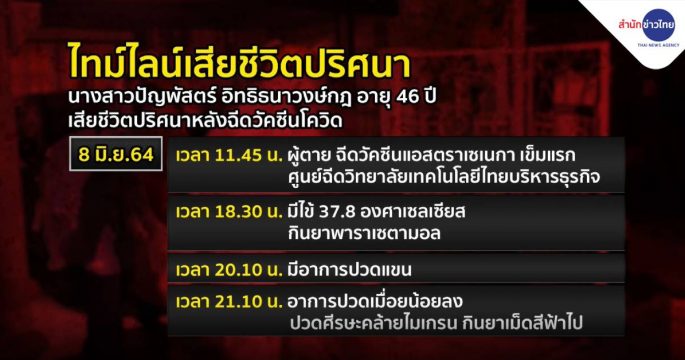 ผลตรวจออกวันนี้ กรณีหญิงวัย 32 ปี วูบหมดสติ เสียชีวิต หลังเข้ารับวัคซีนซิโนแวค 2 สัปดาห์ เบื้องต้น พบลิ่มเลือดอุดกั้นในปอดเฉียบพลัน และมีประวัติกินยาคุม