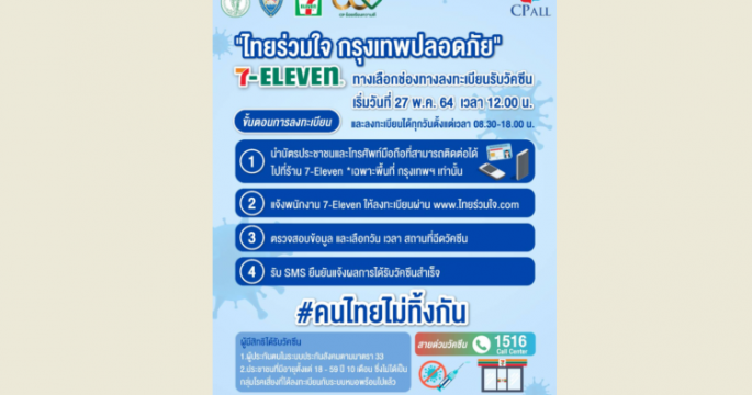 กรุงเทพฯ 26 พ.ค.-ร้านสะดวกซื้อเซเว่น อีเลฟเว่นแจ้งความพร้อมรับลงทะเบียนฉีควัคซีนป้องกันโควิด-19 ตั้งแต่เวลา 12.00 น. วันพรุ่งนี้(27 พ.ค.) โดยให้ผู้ต้องการลงทะเบียนเตรียมบัตรประชาชนและโทรศัพท์มือถือให้พร้อม นายวิชัย จันทร์จริยากุล กรรมการผู้จัดการ (ร่วม) บมจ. ซีพี ออลล์ กล่าวว่า ขณะนี้ได้เตรียมพร้อมทั้งพนักงานที่จะให้คำแนะนำและช่วยเหลือ ตลอดจนอุปกรณ์ที่ร้านเซเว่น อีเลฟเว่นทั้ง 3,314 สาขาในพื้นที่กรุงเทพมหานคร เพื่ออำนวยความสะดวกให้ประชาชนในการเปิดรับลงทะเบียนฉีดวัคซีนโควิด-19 ในโครงการ “ไทยร่วมใจ กรุงเทพปลอดภัย” ผ่านเว็บไซต์ www.ไทยร่วมใจ.com เพื่ออำนวยความสะดวกให้กับประชาชนในพื้นที่กรุงเทพฯ ที่มีอายุ 18-59 ปี และไม่อยู่ในกลุ่ม 7 โรคเสี่ยง ได้รับการฉีดวัคซีนโควิด-19 นอกโรงพยาบาลได้อย่างรวดเร็วและทั่วถึง โดยพร้อมเปิดดำเนินการที่ระบบเปิดให้สามารถลงทะเบียนได้ในวันที่ 27 พฤษภาคม ตั้งแต่เวลา 12.00 น. เป็นต้นไป ส่วนในวันต่อๆ ไปจะเริ่มเปิดรับลงทะเบียนตั้งแต่เวลา 08.30-18.00 น. ซึ่งเชื่อมั่นว่าจะสามารถดูแลผู้มาลงทะเบียนได้อย่างทั่วถึง และไม่กระทบต่อการให้บริการลูกค้าที่ร้าน สำหรับผู้ที่จะไปลงทะเบียนที่ร้านเซเว่น อีเลฟเว่นจะต้องนำบัตรประชาชนตัวจริง และมีโทรศัพท์มือถือรุ่นใดก็ได้ที่สามารถติดต่อได้มาแจ้งพนักงานเพื่อช่วยดำเนินตามขั้นตอนผ่านระบบ ดังนี้ […]