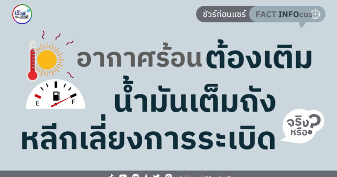 ชัวร์ก่อนแชร์ FactINFOcus : อากาศร้อนต้องเติมน้ำมันเต็มถัง หลีกเลี่ยงการระเบิด จริงหรือ ?