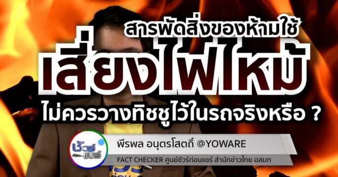 8 มกราคม 2568 – บนโซเชียลมีการแชร์สารพัดสิ่งของห้ามใช้ เพราะเสี่ยงทำให้เกิดไฟไหม้ ทั้งกระดาษทิชชู เจลแอลกอฮอล์ ไม่ควรวางไว้ในรถ และหากไฟลุกในกระทะน้ำมันเดือด ห้ามใช้น้ำดับโดยเด็ดขาด 3 เรื่องฮิตที่กำลังเป็นกระแสเกี่ยวกับสิ่งที่อาจเป็นอันตรายจากไฟไหม้ 1.กระดาษทิชชู่ ทำให้ไฟไหม้ในรถได้ จริงหรือ ?บทสรุป : ไม่จริง ไม่ควรแชร์ แม้ว่าแสงแดดจะสามารถทำให้เกิดอุณหภูมิสูงได้แต่ก็ไม่ร้อนพอที่จะทำให้กระดาษทิชชู่ติดไฟได้ ตรวจสอบข้อเท็จจริงกับ : ดร.นภดล กลิ่นทอง ผู้เชี่ยวชาญด้านยานยนต์ มหาวิทยาลัยเทคโนโลยีราชมงคลธัญบุรี 2.เก็บเจลแอลกอฮอล์ไว้ในรถ เสี่ยงไฟไหม้ จริงหรือ ?บทสรุป : ไม่จริง ไม่ควรแชร์ เจลล้างมืออาจระเหยได้ในอุณหภูมิสูง แต่ก็ไม่น่าจะทำให้เกิดไฟไหม้ได้ ตรวจสอบข้อเท็จจริงกับ : ดร.นงลักษณ์ ตั้งไพศาลกุล หัวหน้ากลุ่มงานวิเคราะห์อนินทรีย์เคมี สถาบันมาตรวิทยาแห่งชาติ 3.ไฟลุกในกระทะน้ำมัน ห้ามใช้น้ำดับ จริงหรือ ? บทสรุป : จริง แชร์ได้ เพราะ น้ำสามารถทำให้น้ำมันลุกไหม้ได้มากขึ้นและระเบิดได้ ตรวจสอบข้อเท็จจริงกับ : […]
