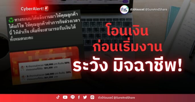 ชัวร์ก่อนแชร์ : โอนเงินก่อนเริ่มงาน = ระวังมิจฉาชีพ!