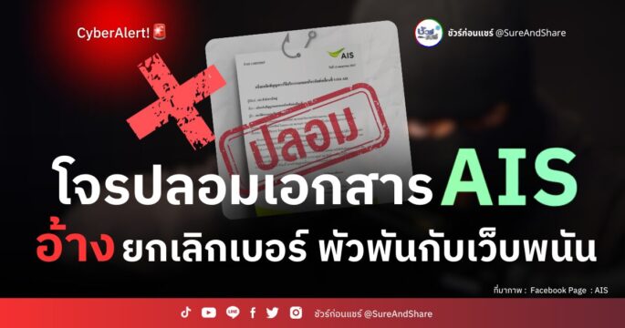 โจรปลอมเอกสาร AIS อ้างยกเลิกเบอร์ พัวพันกับเว็บพนัน l ชัวร์ก่อนแชร์ CyberAlert!🚨
