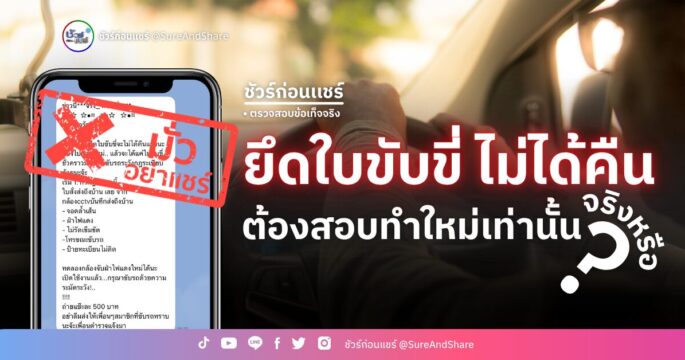 ชัวร์ก่อนแชร์ : โดนยึดใบขับขี่จะไม่ได้คืน ต้องไปสอบทำใหม่เท่านั้น จริงหรือ ?