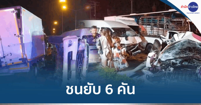 รถตู้ซิ่งชนรวด 6 คัน พังยับเยิน เจ็บ 2 คน