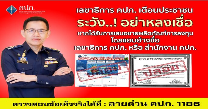 คปภ.เตือนอย่าหลงเชื่อมิจฉาชีพแอบอ้างทำธุรกรรมลงทุนทางอินเทอร์เน็ต