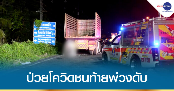 ชายวัย 52 ปี ขี่รถจักรยานยนต์ชนท้ายหางรถพ่วง เสียชีวิตคาที่ ตรวจ ATK พบติดเชื้อโควิด-19 และยังพบห่อยารักษาโควิดตกในที่เกิดเหตุ