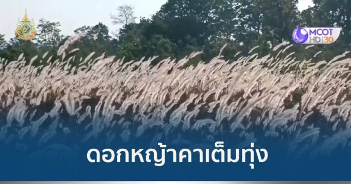 ดอกหญ้าคาชูช่อขาวโพลนเต็มทุ่ง รับฝน บนช่องเขาขาด