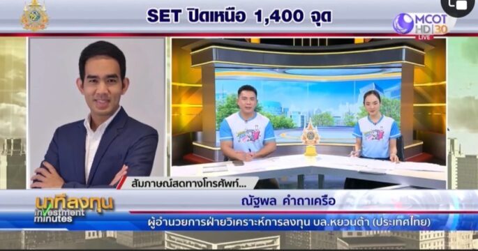 กรุงเทพฯ 23 ก.พ.-ผู้อำนวยการฝ่ายวิเคราะห์การลงทุน บล. หยวนต้า (ประเทศไทย) ในสัมภาษณ์ในรายการนาทีลงทุน ช่อง 9MCOTHD  หมายเลข 30 ถึงทิศทางตลาดทุนไทย และ ปัจจัยสำคัญที่ต้องติดตามสัปดาห์หน้า