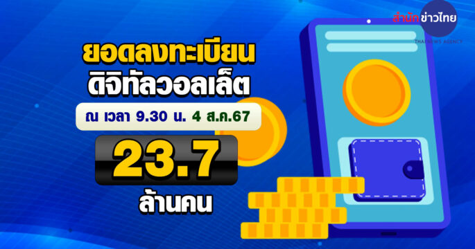 ยอดลงทะเบียนรับสิทธิ์ “ดิจิทัลวอลเล็ต” ช่วงเช้าวันนี้ (4 ส.ค.) ตรวจสอบตัวตนแล้วกว่า 23.7 ล้านคน
