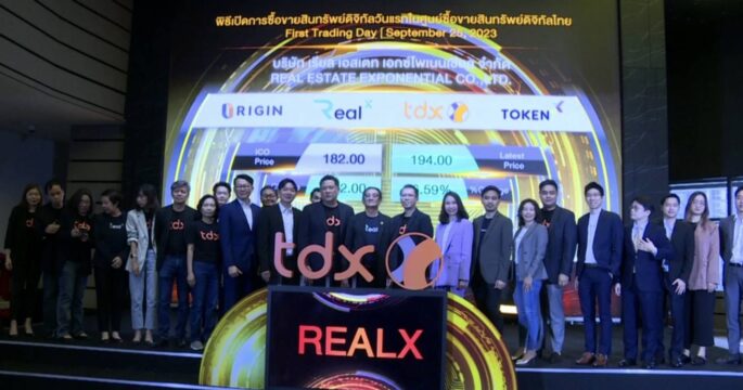 กรุงเทพฯ 25 ก.ย. -โทเคนดิจิทัลเพื่อการลงทุนเรียลเอ็กซ์ (REALX) เปิดเทรดวันแรกและเป็นสินค้าแรกในศูนย์ซื้อขายสินทรัพย์ดิจิทัลไทย (TDX) ที่ราคา 195 บาท จากราคา ICO ที่ 182 บาท เพิ่มขึ้น 13 บาท หรือคิดเป็น 7.14%