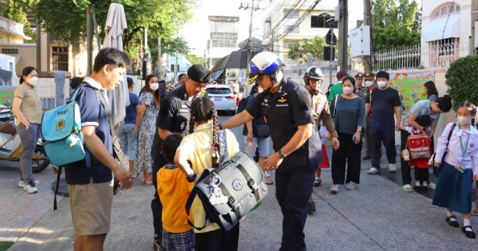 ผู้ช่วย ผบ.ตร.ตรวจการปฏิบัติด้านงานจราจรบริเวณหน้าโรงเรียนในเขต กทม.พร้อมกำชับตำรวจดูแลการจราจรอย่างเต็มกำลัง และขอความร่วมมือผู้ปกครองและนักเรียนไม่จอดแช่ “จอด ลง ส่ง ไป”