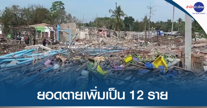 เหตุโกดังเก็บประทัดและดอกไม้ไฟระเบิด ที่ตลาดมูโนะ จ.นราธิวาส ยอดผู้เสียชีวิตเพิ่มเป็น 12 ราย มีผู้ประสบภัยมาลงทะเบียนขอรับความช่วยเหลือแล้ว 365 ราย