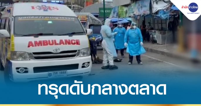 แตกตื่นกันทั้งตลาด ชายทรุดตัวลงกับพื้นริมฟุตปาธ กลางตลาดแม่กลอง จ.สมุทรสงคราม เจ้าหน้าที่นำส่งโรงพยาบาลได้เพียง 3 ชม. ล่าสุดเสียชีวิตแล้ว