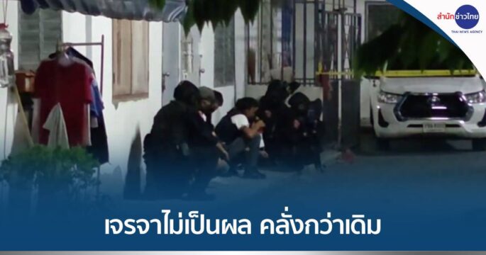 ดาบตำรวจคลั่งไล่ยิงพ่อค้าผักบาดเจ็บ กำลังเจ้าหน้าที่ต้องเข้าล้อมจับนานกว่า 2 ชม. ก่อนยอมมอบตัว