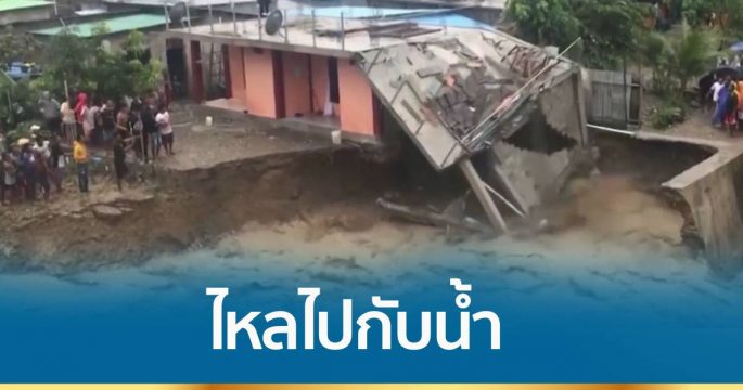 ติมอร์ตะวันออกฝนตกหนักน้ำท่วม กระแสน้ำเซาะพัดบ้านไหลไปกับแม่น้ำโคโมโร ในกรุงดีลี