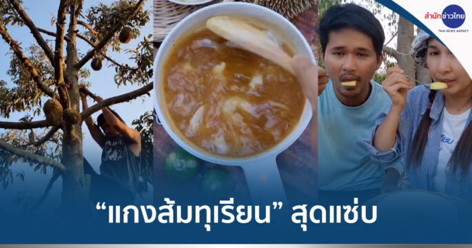 อากาศร้อนจัด ทำผลทุเรียนแตกคาต้น ชาวสวนทุเรียนจึงพลิกวิกฤติเป็นโอกาส นำเนื้อทุเรียนอ่อนมาทำเป็นเมนูสุดแซ่บ “แกงส้มทุเรียน”