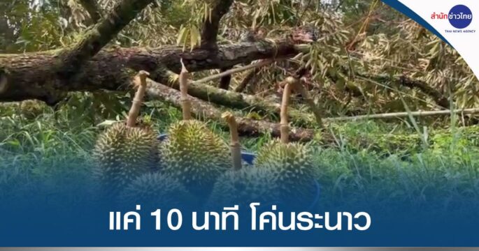 พายุฤดูร้อนพัดถล่มเมืองตราด แค่ 10 นาที หลังคาบ้านปลิวว่อน ต้นทุเรียนหักโค่น ผลร่วงหล่นระนาว เสียหายอย่างน้อย 50,000 บาท