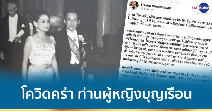 “ท่านผู้หญิงบุญเรือน” ภริยา พลเอกชาติชาย ชุณหะวัณ อดีตนายกรัฐมนตรี ถึงแก่อนิจกรรม ด้วยโรคโควิด-19 รวมอายุ 101 ปี