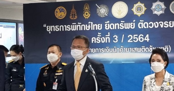 ป.ป.ส.5 ก.ค.-ป.ป.ส.เปิดปฏิบัติการทลายเครือข่ายค้ายาเสพติด “เจ๊เหมย” เข้าค้น 17จุด ใน 4 จังหวัด จับกุมผู้ต้องหาพร้อมยึดอายัดทรัพย์สินรวมกันกว่า 1,060 ล้านบาท นายสมศักดิ์ เทพสุทิน รัฐมนตรีว่าการกระทรวงยุติธรรม ในฐานะผู้อำนวยการศูนย์อำนวยการป้องกันและปราบปรามยาเสพติดแห่งชาติ (ป.ป.ส.) แถลงผลปฏิบัติการ “ยุทธการพิทักษ์ไทย ยึดทรัพย์ ตัดวงจรยาเสพติด” ครั้ง ที่3 ซึ่งขยายผลจากการจับกุม น.ส.เขมมิกา ใจปินตา หรือ “เจ๊เหมย” ตัวกลางในการโอนเงินค้ายาเสพติด โดยเข้าตรวจค้น 17 จุด ในพื้นที่ 4 จังหวัด ได้แก่ กรุงเทพฯ จังหวัดนราธิวาส จังหวัดสมุทรปราการ และจังหวัดชลบุรี สามารถตรวจยึด อายัดทรัพย์สินได้รวมกว่า 1,060 ล้านบาท และจับกุมผู้ต้องหาตามหมายจับที่เกี่ยวข้องกับการทำธุรกรรมทางการเงินของเครือข่ายดังกล่าว คือน.ส.ดุลยลักษณ์ ว่องไวยนต์ ,น.ส.ตงเฉิน ,นายสุชัย เครือแก้ว นอกจากนี้ยังสามารถจับกุมผู้ต้องหาที่ทำหน้าที่ขนส่งเฮโรอีนไปยังมาเลเซีย คือ น.ส.นีรา เจะเงาะ , นายมูฮามัอฟาอิส […]