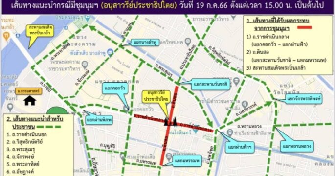 บช.น. แนะประชาชนหลีกเลี่ยงเส้นทาง กรณีมีการชุมนุมฯ บริเวณอนุสาวรียป์ระชาธิปไตยในวันที่ 19 ก.ค.66