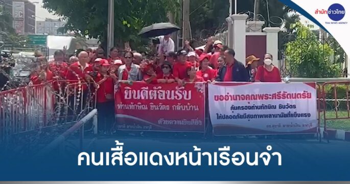 ขบวนรถของ “ทักษิณ” เดินทางถึงเรือนจำพิเศษกรุงเทพฯ ท่ามกลางมวลชนคนเสื้อแดงที่มาปักหลักรอให้กำลังใจตั้งแต่เช้า ตะโกน “เรารักทักษิณๆ” ปรบมือดังสนั่นขณะขบวนรถเคลื่อนผ่านเข้าประตูเรือนจำ