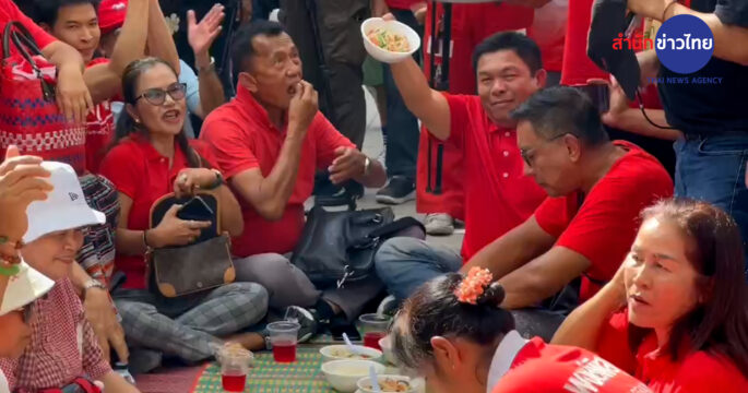 มวลชนเสื้อแดงกินส้มตำหน้าเรือนจำให้กำลังใจ “ทักษิณ”