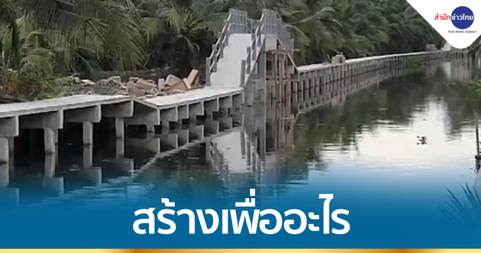 ชาวบ้านริมคลองตาปลั่ง อ.บ้านแพ้ว จ.สมุทรสาคร ถามสร้างสะพานทางเท้าคอนกรีต กว้าง 1.2 เมตร ระยะทางครึ่งกิโลเมตร เพื่ออะไร ทั้งที่ไม่มีใครจำเป็นต้องใช้
