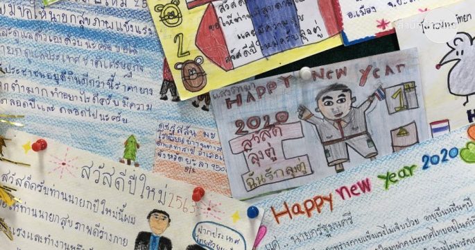 ทำเนียบฯ 7 ม.ค.- ผู้สื่อข่าวรายงานว่า ทำเนียบรัฐบาลจัดแสดง ส.ค.ส. ที่เด็กทั่วประเทศส่งเข้ามาอวยพรปีใหม่ 2563 ให้กับ พล.อ.ประยุทธ์ จันทร์โอชา นายกรัฐมนตรี ส่วนใหญ่เป็นการอวยพรให้นายกรัฐมนตรีให้มีสุขภาพแข็งแรง ไม่เจ็บป่วย พักผ่อนมากๆ มีความสุขตลอดปี มีแรงและกำลังในการพัฒนาประเทศ และยังมีข้อความหนูรักลุง พวกเรารักลุงตู่ และขอให้นายกฯ อย่าใจร้อน อย่าวีน อย่าหน้าปูด ให้ยิ้มบ้าง เพราะเป็นสิ่งไม่ดี นอกจากนี้ ยังมีเด็กหลายคนสะท้อนปัญหาและนโยบายของประเทศ อาทิ ทำยังไงดีครับบ้านนี้เมืองนี้มีแต่โจรผู้ร้าย เด็กๆ ภาคใต้อยากให้นายกรัฐมนตรีขึ้นราคายางพาราและน้ำมันปาล์ม เห็นแก่คนจนด้วยนะคะ เพราะขณะนี้คนใต้อยู่ไม่ได้ เศรษฐกิจไม่ดี ขอบคุณลุงตู่ที่ทำชิมช้อปใช้เพื่อประชาชน และขออย่าบริหารประเทศล้าหลัง กัมพูชา พม่า จะแซงหน้าประเทศไทยแล้วครับ .- สำนักข่าวไทย