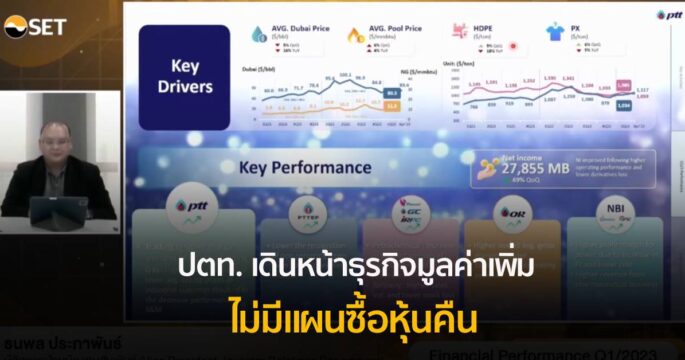 ปตท. ประเมินภาพรวมธุรกิจปีนี้มีทั้งปัจจัยบวกและลบจากราคาพลังงานโลกที่ลดลง แต่กระจายการลงทุนทั้งธุรกิจใหม่และเก่า เพิ่มมูลค่าเพิ่ม จึงมีทั้งธุรกิจที่ทั้งได้รับผลกระทบและไม่ได้รับผลกระทบจากความผันผวนของราคาพลังงาน ซึ่งแม้ราคาหุ้นจะต่ำลง แต่ก็ไม่มีแผนงานซื้อหุ้นคืน