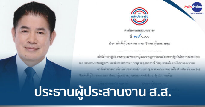 “พล.อ.ประวิตร” ลงนามแต่งตั้ง “ร.อ.ธรรมนัส” เป็นประธานผู้ประสานงานสมาชิกสภาผู้แทนราษฎร พรรคพลังประชารัฐ