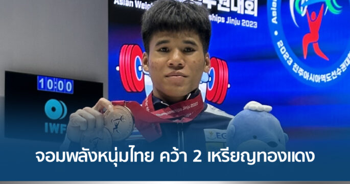 จอมพลังหนุ่มไทยสุดปัง “ธีรพงศ์ ศิลาชัย” วัย 20 ปี แม้อายุยังอยู่ในระดับเยาวชน แต่ต่อกรกับรุ่นใหญ่ได้อย่างไม่เกรงกลัว คว้า 2 เหรียญทองแดง รุ่น 61 กิโลกรัมชาย พร้อมทุบสถิติเยาวชนเอเชียและเยาวชนโลก ลงได้ในท่าคลีนแอนด์เจิร์ก และสถิติน้ำหนักรวม