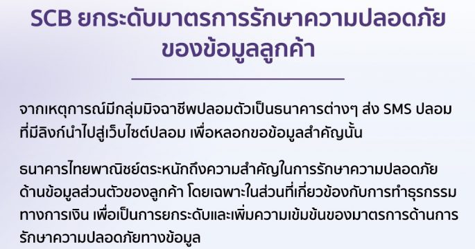 SCB ยกระดับมาตรการการรักษาความปลอดภัยของข้อมูลลูกค้า