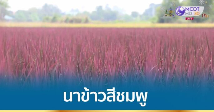 นาข้าวสีชมพู ชูใบสวยทั้งทุ่ง จุดเช็กอินใหม่ ที่แปลงนาข้าวสีชมพูของกลุ่มวิสาหกิจชุมชนคนมีดีพิษณุโลก ต.ท่าโพธิ์ อ.เมือง