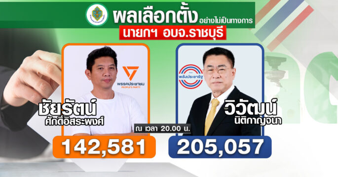 แม้ผลคะแนนเลือกตั้งนายก อบจ.ราชบุรี เป็นทางการยังไม่ออก แต่ผู้สมัครทั้ง 2 ฝ่าย ต่างเริ่มยอมรับผลเลือกตั้ง โดย “วิวัฒน์” ผู้สมัครหมายเลข 2 มั่นใจในชัยชนะ