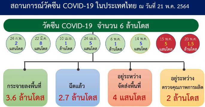 โฆษก ศบค.แจงวัคซีน 6 ล้านโดน กระจายลงพื้นที่แล้ว 3.6 ล้านโดน ส่วนอีก 2 ล้านโดสอยู่ระหว่างตรวจคุณภาพ