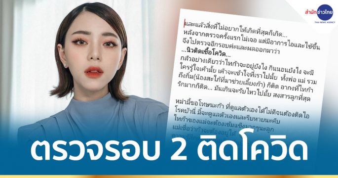 “นิวเคลียร์ หรรษา” โพสต์แจ้งผลตรวจรอบ 2 เป็นบวก ติดโควิด-19 ห่วงลูกชาย “น้องไทก้า” เนื่องจากคนใกล้ชิด ทั้งน้องสะใภ้และอากง ล้วนติดเชื้อทั้งหมด พร้อมแจ้งไทม์ไลน์ไปงานวันเกิด