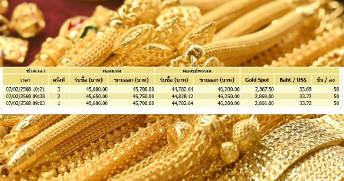 ทองคำไทยทำนิวไฮต่อ ทองแท่งแตะ 45,750 บาท