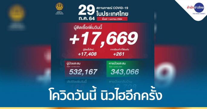 นิวไฮอีกครั้ง โควิด-19 ประเทศไทย วันนี้ ผู้ติดเชื้อเพิ่ม 17,669 คน เสียชีวิต 165 คน หายป่วยกลับบ้านอีก 9,798 คน