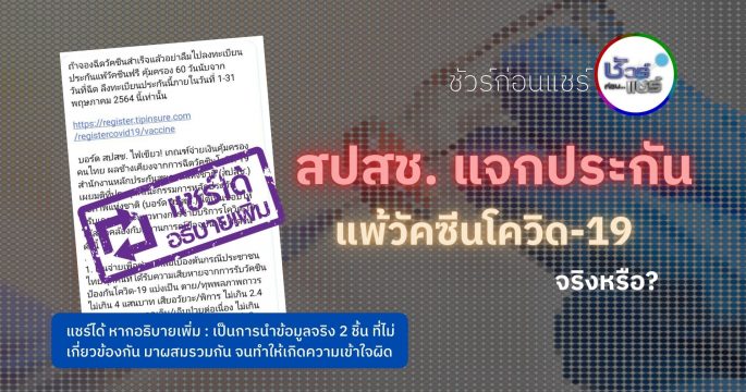 18 พฤษภาคม 2564ตรวจสอบข้อเท็จจริง / เรียบเรียง โดย : พีรพล อนุตรโสตถิ์, กลาง ณัฐนที บนสังคมออนไลน์แชร์ “ห้ามใช้ผลิตภัณฑ์ล้างห้องน้ำผสมกับน้ำยาฟอกผ้าขาว เพราะจะทำให้เกิดก๊าซพิษ เป็นอันตรายถึงขั้นเสียชีวิตได้” ศูนย์ชัวร์ก่อนแชร์ ตรวจสอบกับผู้เชี่ยวชาญ ยืนยันว่า “เป็นความจริง” บทสรุป : จริง แชร์ต่อได้ • ผลิตภัณฑ์ล้างห้องน้ำผสมกับน้ำยาฟอกผ้าขาว ทำให้เกิดก๊าซพิษจริง• ต้องอ่านฉลากก่อนใช้งาน และออกห่างเมื่อสารเคมีรั่วไหล ข้อมูลที่ถูกแชร์ผู้ใช้งาน Facebook รายหนึ่งได้โพสต์ข้อความ เล่าประสบการณ์เฉียดตาย มีใจความสำคัญว่า ก่อนขัดห้องน้ำได้ทำการราดน้ำยาล้างห้องน้ำทิ้งไว้ประมาณ 10 – 15 นาที จากนั้นได้นำน้ำที่เหลือจากการซักผ้า ซึ่งมีน้ำยาฟอกผ้าขาวละลายอยู่มาราดทับ ส่งผลให้เกิดกลิ่นเหม็นสารเคมีอย่างรุนแรง เมื่อสูดดมเข้าไป มีอาการแสบคอ แสบจมูก หายใจติดขัด รู้สึกเหนื่อยแบบผิดปกติ แพทย์ทำการเอกซเรย์ปอดพบว่า มีของเหลวอยู่ในปอด ทั้งนี้ ได้รับคำแนะนำจากแพทย์ว่า ห้ามใช้ผลิตภัณฑ์ล้างห้องน้ำผสมกับน้ำยาฟอกผ้าขาว เพราะจะทำให้เกิดก๊าซพิษ สามารถทำลายระบบทางเดินหายใจ ปอด และอาจทำให้เสียชีวิตได้ โพสต์ดังกล่าวได้รับความสนใจเป็นอย่างมาก […]