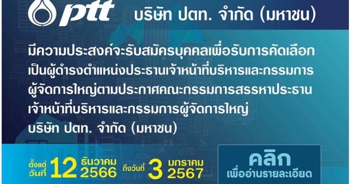 ปตท.ประกาศรับสมัคร ซีอีโอคนใหม่ 12 ธ.ค. 66-3 ม.ค.67