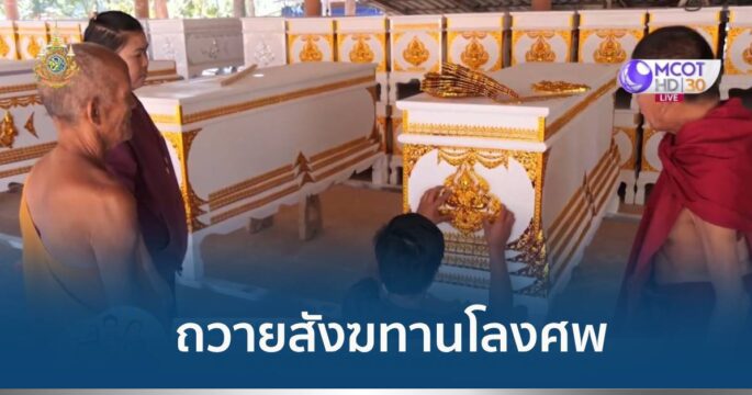 วัดปางมะกง อ.เชียงดาว จ.เชียงใหม่ เจ้าอาวาสวัดพร้อมพระลูกวัดขะมักเขม้น ช่วยกันทำโลงศพ ทาสี ฉลุลายไม้ประณีตสวยงาม ไม่มีจำหน่ายแต่มีไว้เพื่อบริจาคฟรี