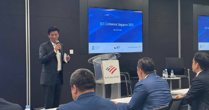 กรุงเทพฯ 27 พ.ค. – ตลท.จับมือ บล. เกียรตินาคินภัทร และ Bank of America นำ 7 บจ. โรดโชว์สิงคโปร์ ให้แสดงศักยภาพและความแข็งแกร่งของ บจ. ตลาดหลักทรัพย์แห่งประเทศไทย (ตลท.) ร่วมกับ บริษัทหลักทรัพย์เกียรตินาคินภัทร จำกัด (มหาชน) และ Bank of America จัดโรดโชว์ “SET Singapore Roadshow 2025” นำโดยนายอัสสเดช คงสิริ กรรมการและผู้จัดการตลาดหลักทรัพย์ฯ พาบริษัทจดทะเบียน 7 แห่ง จากหลายหมวดธุรกิจร่วมให้ข้อมูลแผนการดำเนินงาน แสดงศักยภาพและความแข็งแกร่งของบริษัทจดทะเบียนไทย พร้อมด้วยภาครัฐ นายศึกษิษฏ์ ศรีจอมขวัญ รองเลขาธิการนายกรัฐมนตรี และนายพลช หุตะเจริญ ผู้อำนวยการกองพัฒนาตลาดตราสารหนี้ รักษาการในตำแหน่งที่ปรึกษาด้านตลาดตราสารหนี้ สำนักงานบริหารหนี้สาธารณะร่วมตอกย้ำนโยบายภาครัฐในการขับเคลื่อนเศรษฐกิจและการลงทุนไทย โดยได้รับความสนใจจากผู้ลงทุนสถาบันในสิงคโปร์เข้าร่วมงานกว่า 20 กองทุน เมื่อวันที่ 22-23 พฤษภาคม […]