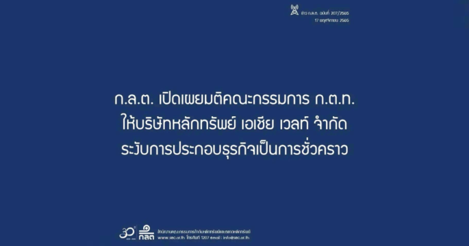 ปิด บล. เอเชีย เวลท์ เพิกถอนใบอนุญาตประกอบธุรกิจหลักทรัพย์