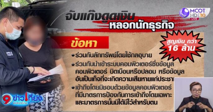 ตำรวจไซเบอร์รวบสาวบัญชีม้า ร่วมแก๊งหลอกนักธุรกิจ อ้างเป็นเจ้าหน้าที่กรมทะเบียนธุรกิจการค้า ให้ผู้เสียหายติดตั้งแอปฯ ก่อนดูดเงิน สูญกว่า 16 ล้าน