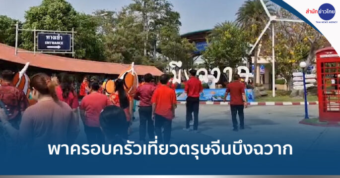 ศูนย์แสดงพันธุ์สัตว์น้ำบึงฉวากเฉลิมพระเกียรติ จ.สุพรรณบุรี จัดงานตรุษจีน พร้อมขบวนพาเหรดมาสคอตร่วมเต้นประกอบเพลง ตลอดทั้งวันมีนักท่องเที่ยวพาครอบครัวมาเที่ยวชมการแสดงพันธุ์สัตว์น้ำจำนวนมาก